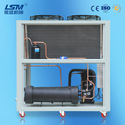 風(fēng)冷工業(yè)冷水機(jī)的水箱以及水冷工業(yè)冷水機(jī)的冷卻水塔中的冷卻水,是為冷凝器降溫?fù)Q熱而存在的,其能夠帶走壓縮機(jī)工作產(chǎn)生的熱量,如果能夠保證冷卻水流量以及風(fēng)冷工業(yè)冷水機(jī)水箱、水冷工業(yè)冷水機(jī)水塔的散熱通風(fēng)能力,則能夠讓冷卻水溫度保持在限定范圍內(nèi),以此最大化為壓縮機(jī)降溫。